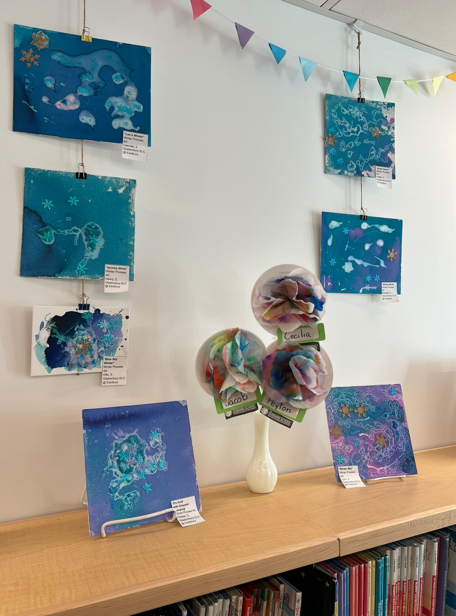 Every March, the Children’s Department hosts a Preschool Art Show featuring works of art from daycare centers, nursery schools and preschools throughout Glastonbury. This show is a Library tradition that we look forward to each year. In addition to showcasing the colorful creations of little hands, this exhibition emphasizes the crucial role that artistic expression plays in the lives of preschoolers. Art provides preschoolers with a means to express themselves and communicate their thoughts, feelings, and experiences. Engaging in art activities helps develop fine motor skills and hand-eye coordination. It stimulates cognitive development by encouraging observation, decision-making, and problem-solving. When children plan their artwork or experiment with colors and shapes, they're actively engaging their brains, forming connections, and honing their analytical skills. Completing an art project, whether it's a simple finger painting or a complex collage, gives children a sense of accomplishment. Displaying their creations in a public setting like a preschool art show boosts their confidence and self-esteem, fostering a positive self-image. |